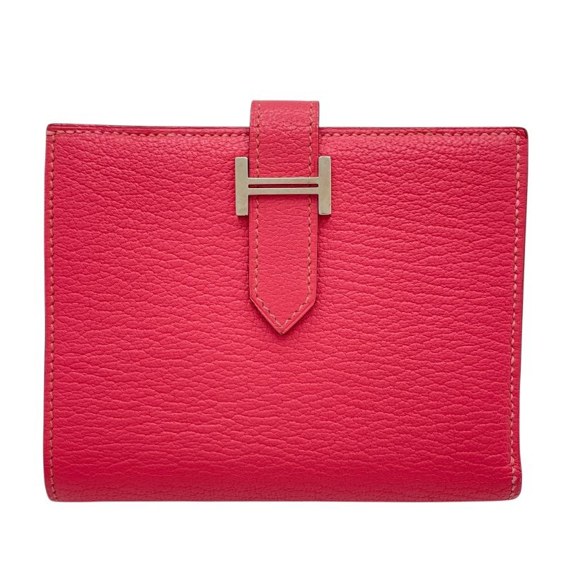 エルメス HERMES ベアンコンパクト A刻 ローズリップスティック SV金具 シェーブル レディース 二つ折り財布