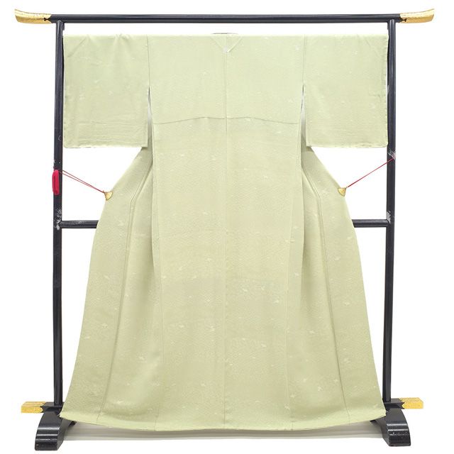 色無地 着物 正絹 抹茶色 淡黄緑 地紋 草花 一つ紋 セミフォーマル 春 秋 冬 仕立て上がり 身丈167 裄丈69 Lサイズ みやがわ sb 15128