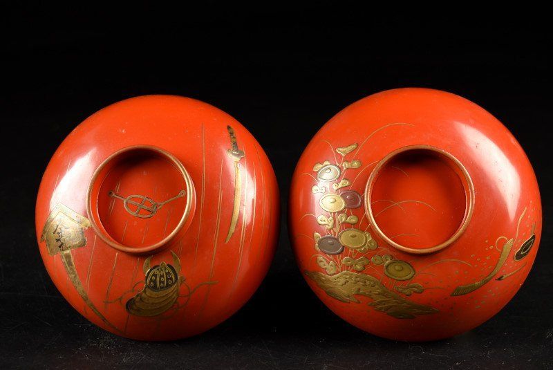 蔵A 3261 a 木製朱塗 絵替蒔絵 吸物椀 汁椀 十客