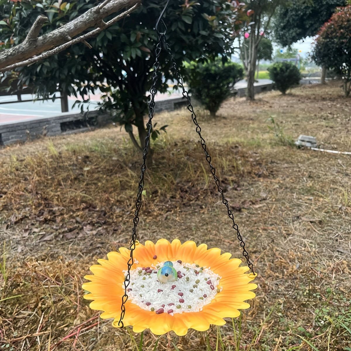 吊り下げ バードフィーダー 小鳥 野鳥 用 給餌器 餌箱 餌台えさ置き 簡単取り付け ヒマワリ型 ひまわり 餌入れ 鳥 ガーデンオブジェ インテリア ガーデニング ペット食器 野鳥観察 ユニーク バード用品 金属 オシャレ