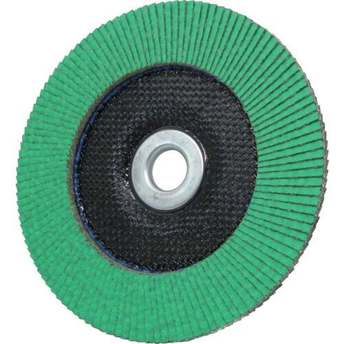 特長●ジルコニア砥材を使用し、重研削に適しています。●空冷作用のため、熱によるワークのひずみや、焼けがほとんど入りません。●自生作用が大きく、目づまりが少なく、面粗度が均一です。●研磨時の騒音や振動が少ないため作業が快適です。用途●溶接のビード落とし。●バリ取り、面取り。●ステンレス、鉄の研磨。仕様●粒度(#):100●外径(mm):180●羽根長さ(mm):20●穴径(mm):22●最高使用回転数(rpm):8400●羽根枚数(枚):120仕様2●最高使用周速度:φ100mm:72m/s、φ125mm:72m/s、φ180mm:80m/s●穴径16mm(15mm)材質/仕上●ジルコニア砥材セット内容/付属品●15mm穴用アダプター3個付(穴径16mmタイプのみ)注意●最高使用回転数以下でご使用ください。●保護メガネをご使用ください。