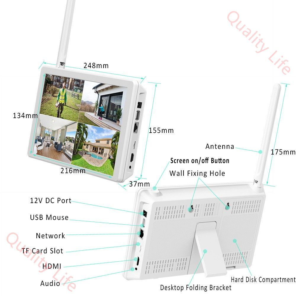 防犯カメラ 2台セット800万画素 屋外屋内用IP 66 10インチモニター付属 遠隔監視 動体検知 暗視撮影 双方向音声 H.265 圧縮 WiFi強化