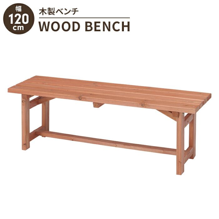 木製 ガーデンベンチ 幅120 屋外ベンチ ベンチチェア 3人掛け 天然木 杉材 コンパクト 木目調 おしゃれ 屋外 庭 ベランダ