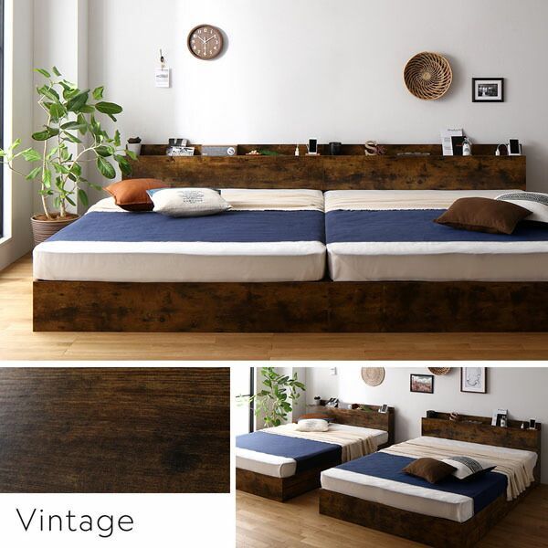 ベッド ワイドキング 220 S SD 国産ポケットコイルマットレス付 ハード ブラウン 2台セット キャスター付 引き出し収納 ベッド下収納 コンセント付 宮付き 宮棚付き 頑丈 収納ベッド ベッドフレーム ベット 寝具 ワイドキングベッド