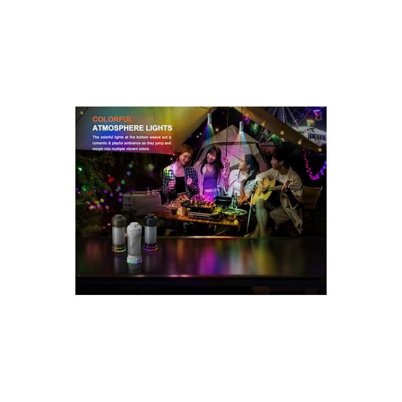 【万能照明モード】無段階360°照明、ダウンライト(トーチモード)、ホワイト照明の組み合わせなど、複数の照明オプションがあります。 また、緊急時の使用にはレッドライト/レッドフラッシュ、カラフルなシーンモードで楽しいキャンプの雰囲気を演出。