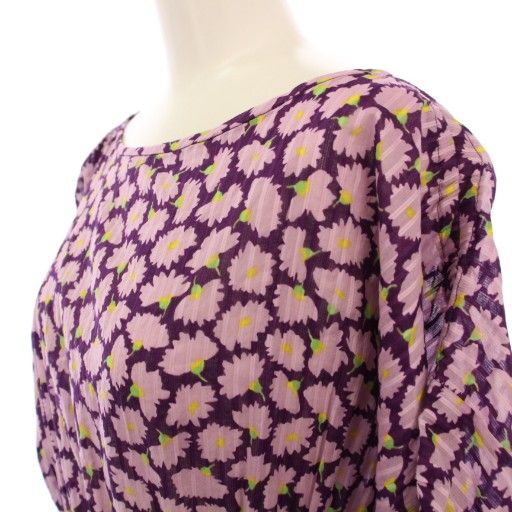 ケイトスペード KATE SPADE フ ワンピース マキシ ロング 七分袖 クルーネック ウエストゴム 花柄 ベルト M 紫 パープル タグ付き |BB