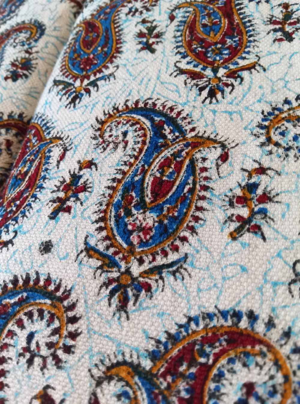 テーブルクロス ペルシャ更紗 木版染め イラン イスファハン コットン ペイズリー 手染め タペストリー インテリアファブリック 伝統 民族雑貨 エスニック ベッドカバー ソファカバー